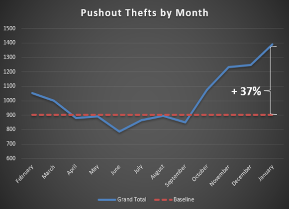 Entre octobre et janvier, les vols de poussoirs ont augmenté de 37 % par rapport au reste de l'année.