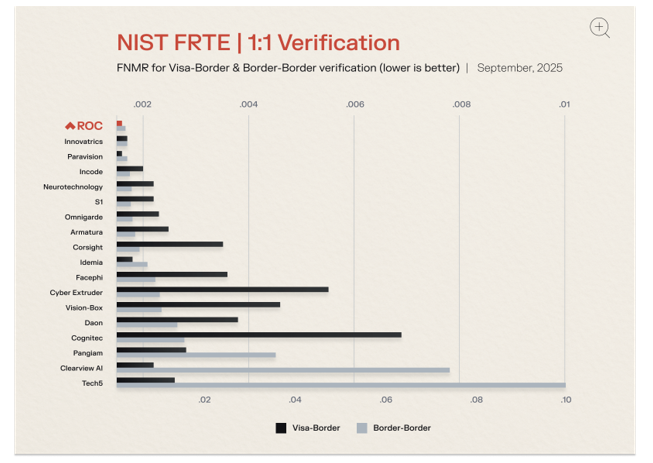 ROC’s algorithm has been independently validated by the U.S. National Institute of Standards and Technology (NIST) through its Face Recognition Technology Evaluation (FRTE), the global benchmark for facial recognition algorithm performance. According to the most recent results, ROC ranked as the #1 American vendor and among the top global performers, achieving exceptional accuracy, speed, and fairness across all major test categories. Highlights include: